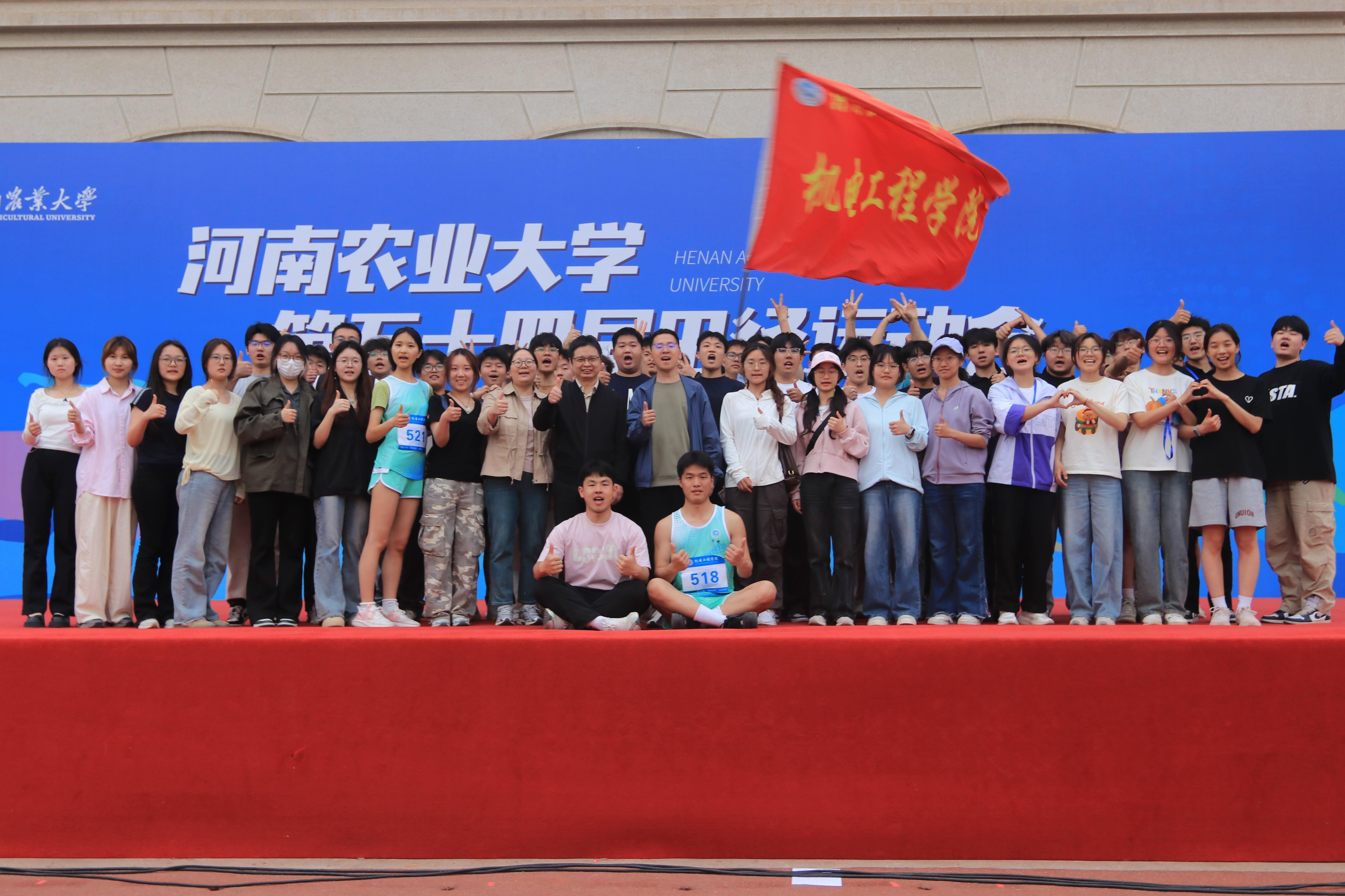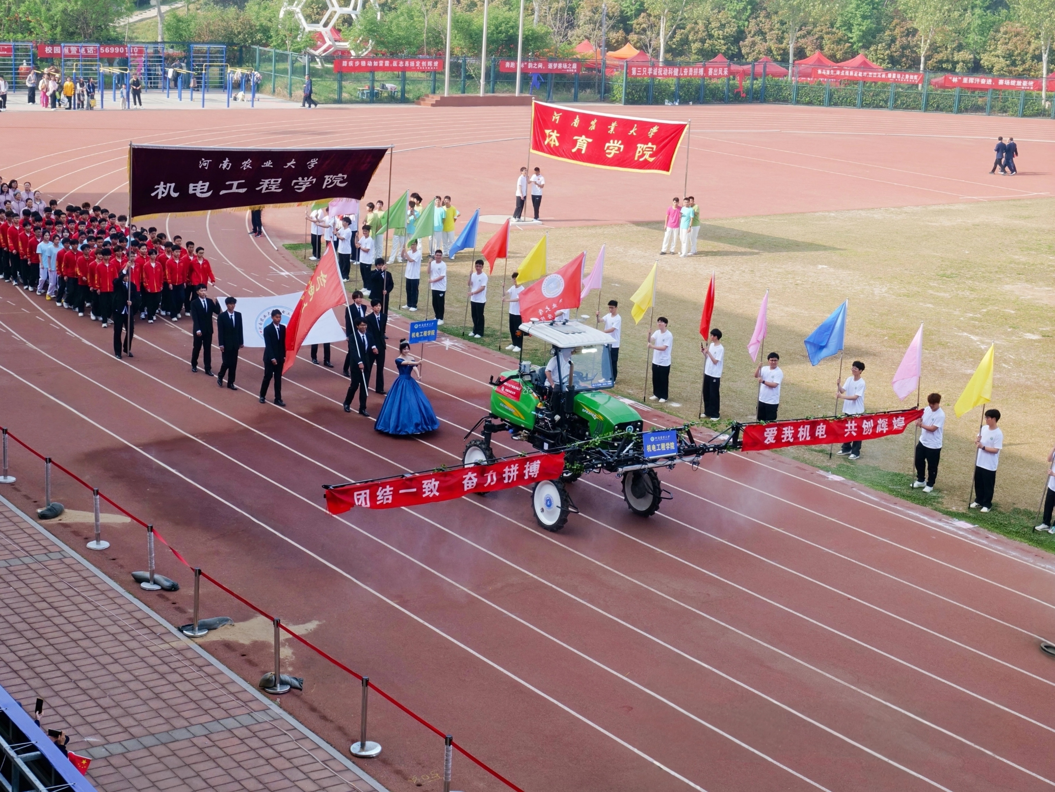 的学术科研成果,同时,“团结一致,奋力拼搏,爱我机电,共创辉煌!”的院训响彻会场,彰显了机电精神。色彩斑斓的旗帜随风飘扬,热情洋溢的呼喊声冲破云霄,展现了机电学子的青春活力与风采。
