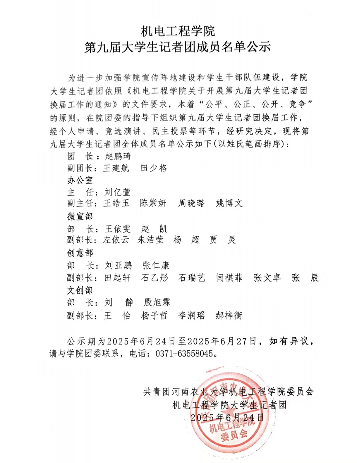 为进一步加强新葡京娱乐城App 宣传阵地建设和学生干部队伍建设,新葡京娱乐城App 大学生记者团依照《新葡京娱乐城App 关于开展第九届大学生记者团换届工作的通知》的文件要求,本着“公平、公正、公开、竞争”的原则,在院团委的指导下组织第九届大学生记者团换届工作,经个人申请、竟选演讲、民主投票等环节,经研究决定,现将第九届大学生记者团全体成员名单公示如下(以姓氏笔画排序):