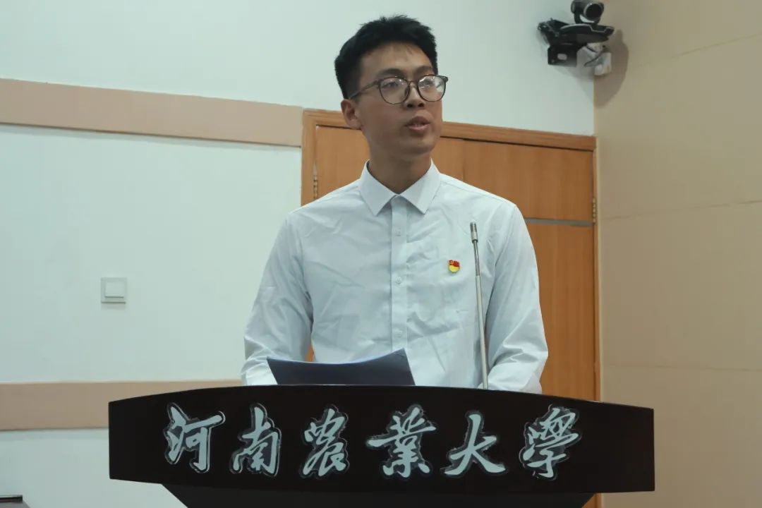 青马班第八期优秀学员代表张文韬上台发言。他代表学员承诺勤学善思、明德修业、明辨笃行、脚踏实地,以青春之姿践行使命,为民族复兴贡献力量,并祝愿培训圆满成功。