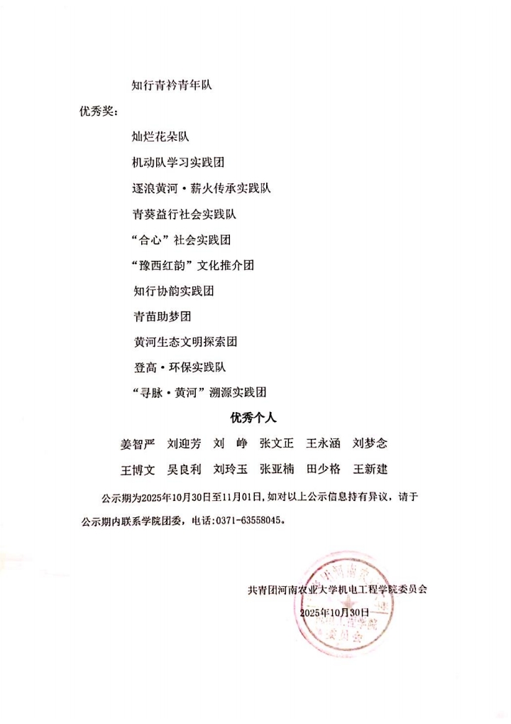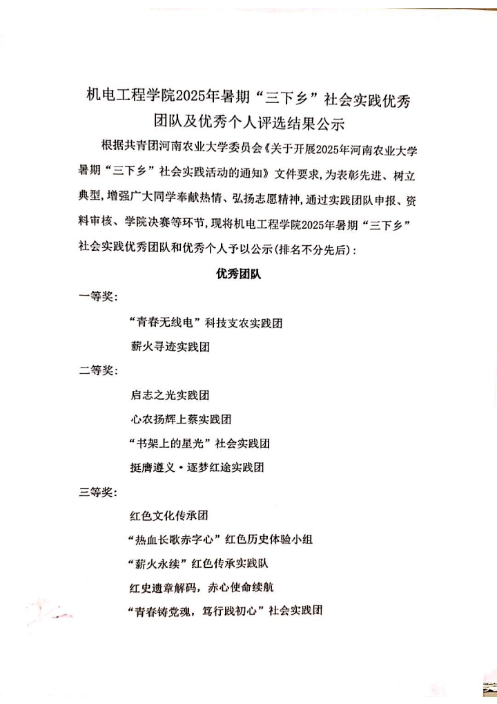 根据共青团新葡京娱乐城App 委员会《关于开展2025年新葡京娱乐城App 暑期“三下乡”社会实践活动的通知》文件要求,为表彰先进、树立典型,增强广大同学奉献热情、弘扬志愿精神,通过实践团队申报、资料审核、新葡京娱乐城App 决赛等环节,现将新葡京娱乐城App 2025年暑期“三下乡”社会实践优秀团队和优秀个人予以公示(排名不分先后):