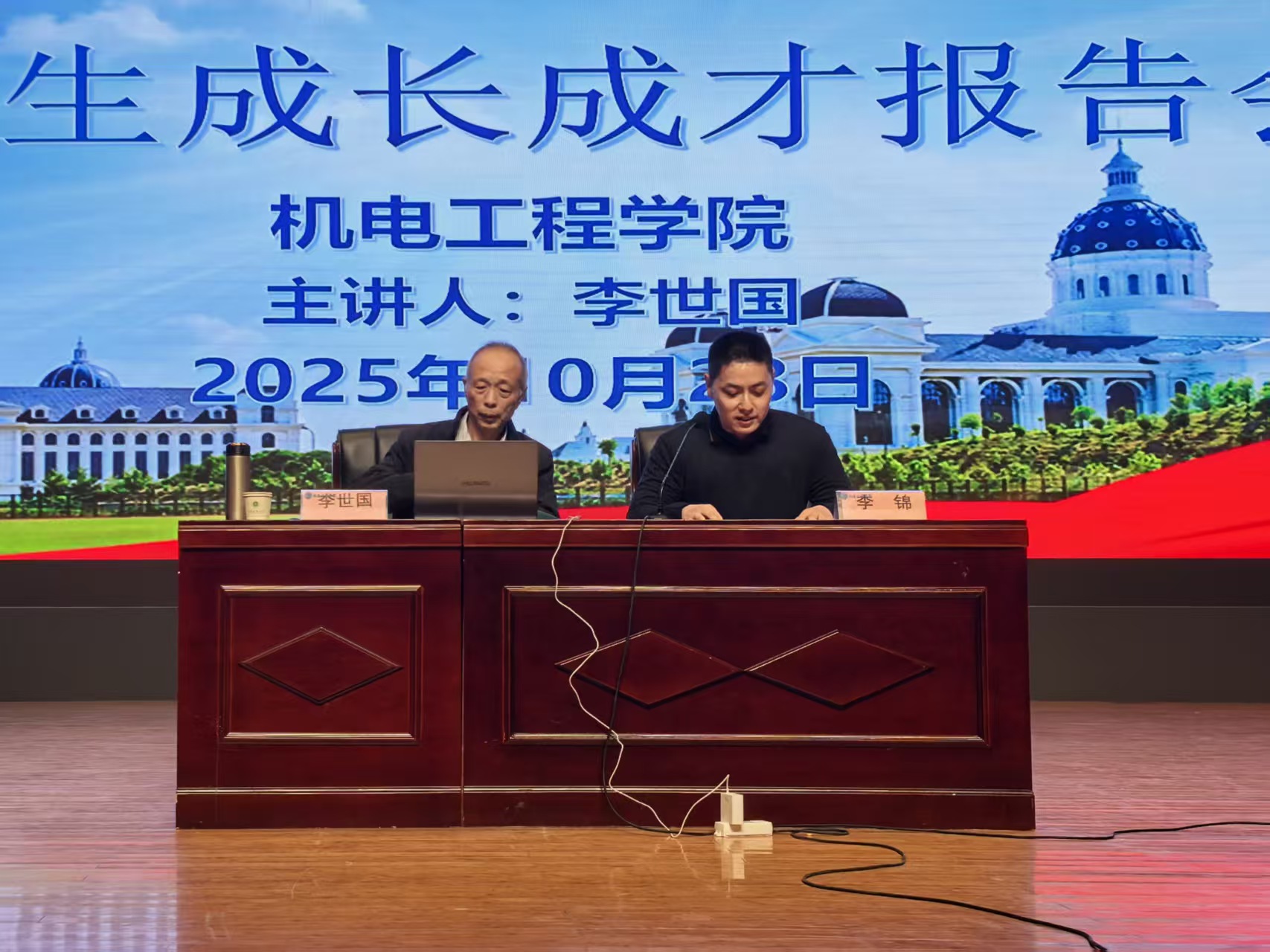 于文化路校区千人大礼堂召开“大学生成长成才报告会”。此次报告会由研究生辅导员李锦老师主持,校关工委执行副主任兼秘书长李世国老师主讲,以党史为脉络,为25级全体新生带来了一场思想深刻、内容丰富的“开学第一课”。