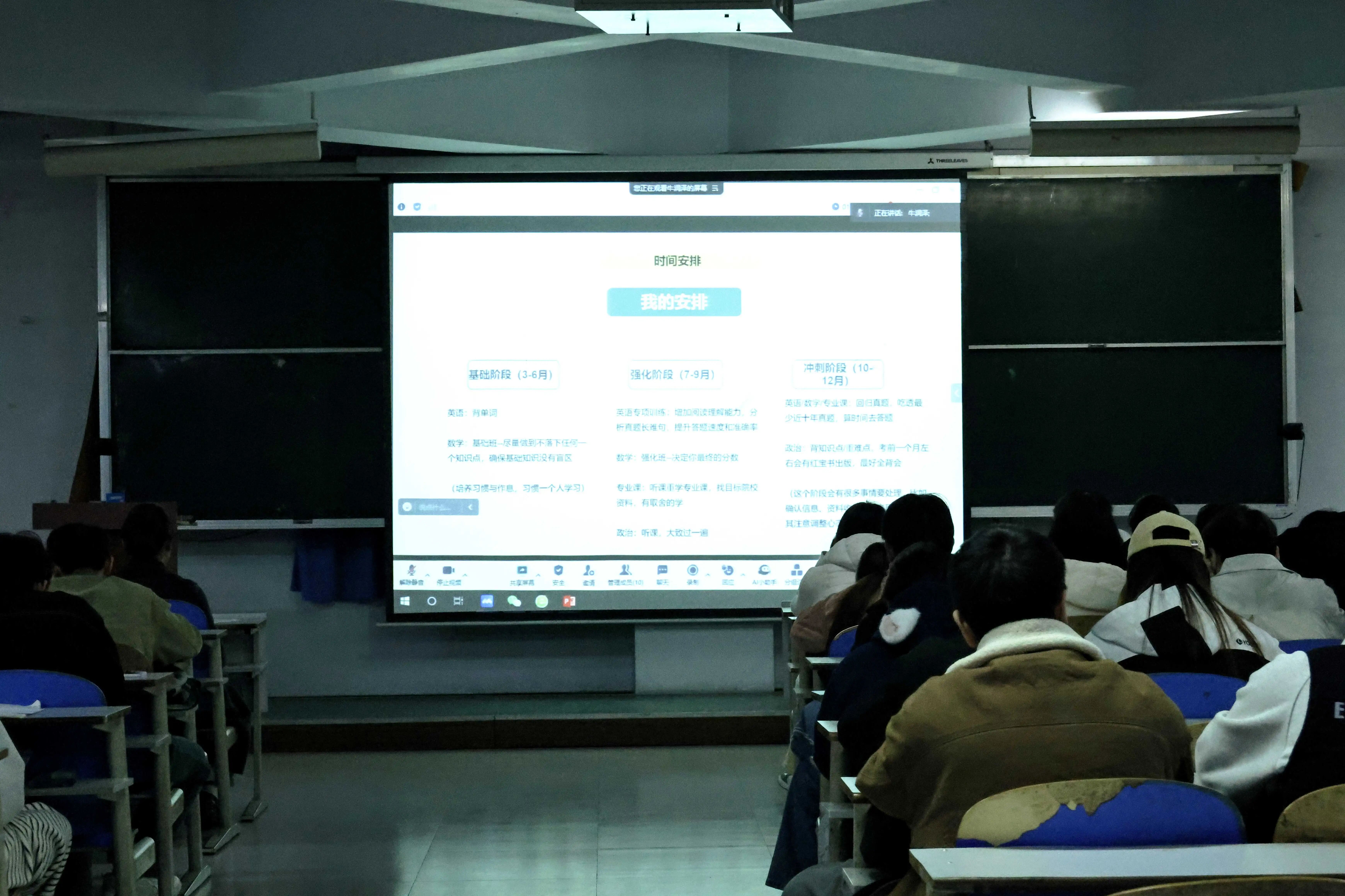 在前期通过问卷调查,充分收集了同学们的目标院校选择及感兴趣的核心问题,确保分享内容精准对接学子需求。分享会上,各位学长学姐结合自身考研经历,从院校专业选择、复习计划制定、各科学习方法、备考心态调整以及复试技巧等多个关键环节展开分享。他们毫无保留地倾囊相授,不仅细致讲解了不同阶段的备考重点和避坑指南,还针对同学们关心的重难点问题进行了耐心解答。鲜活的案例、实用的技巧以及真挚的建议,让在场学生受益匪浅,为有考研意向的同学们提供了清晰指引。
