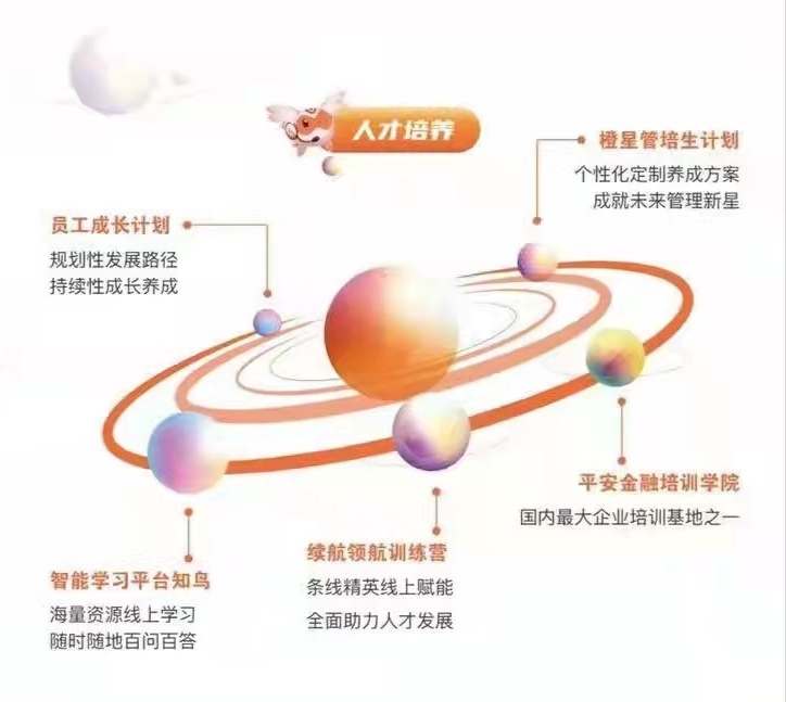 “橙星计划”是平安产险校招品牌,是针对优质应届毕业生的长期培养计划,通过长期持续性的系列培养和关注,使其成长为公司的中坚力量,并在未来担当公司的管理岗位。