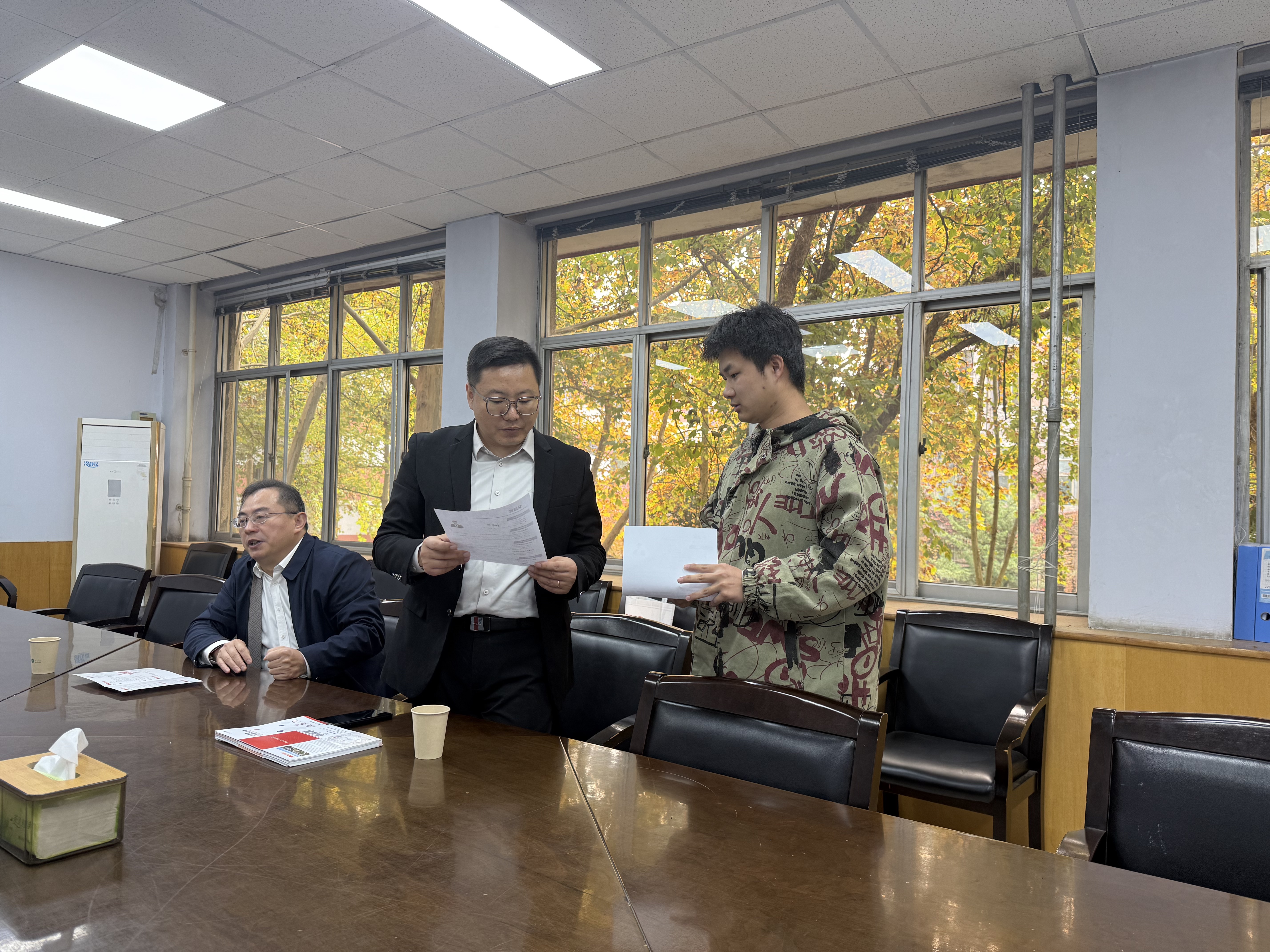 与玫德集团就业合作座谈会于文化路校区十五号楼二楼会议室顺利召开。院党委副书记宋晶、机械系主任丁攀、2026届毕业生辅导员胡亭亭,及本科生、研究生毕业生代表出席会议;玫德集团人事经理邵猛、平阴县人社局党组成员、副局长刘凤国受邀参会。