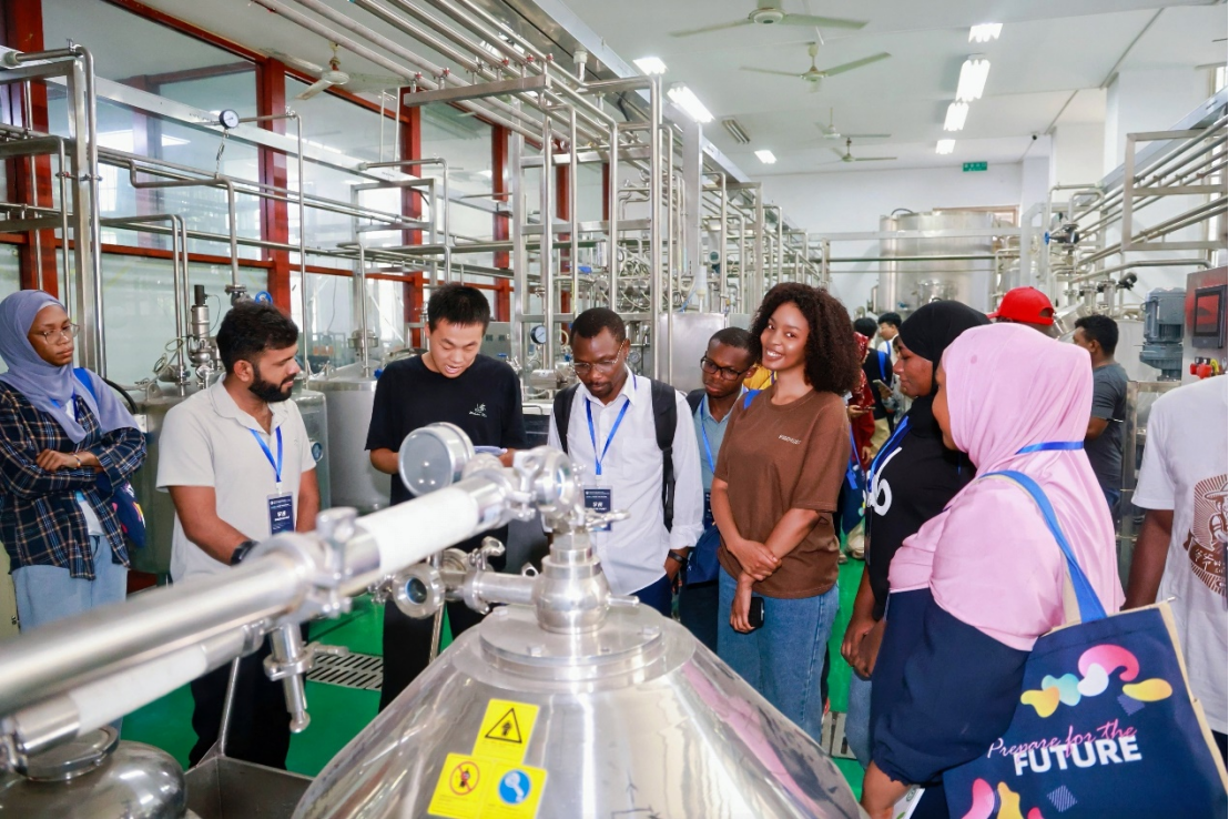 In the beer brewing pilot laboratory, the students learned about key brewing processes such as malt saccharification, fermentation, filtration, and maturation. Through on-site demonstrations and smart equipment displays, they observed how traditional brewing techniques are being integrated with digital and intelligent control systems. A student from Serbia remarked, “This is very different from the traditional brewing methods in my country. The technology here makes the process much more precise and efficient.”