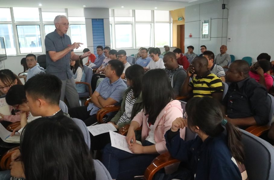 On May 15, Norman Terry,Department of Plant and Microbial Biology, University of California, Berkeley, was appointed part-time professor of Jiangsu University. At the ceremony, Ma Haile, Party Branch Secretary of School of Food and Biological Engineering, presented Prof. Norman Terry a letter of appointment, and decorated Prof. Norman Terry wth a Jiangsu University emblem. Prof. Ma Haile made a brief introduction of Prof. Terry’s Curriculum Vitae and major academic achievements. More than 100 Sino-foreign faculty members and students of the school attended the ceremony. After the ceremony, Prof. Norman Terry made a lecture entitled A Personal Approach to Manuscript Writing and Other Aspects of Research. After the ceremony, Prof. Terry made an academic lecture entitled Phytoremediation of Contaminated Soil and Water. He also visited museum of our school.