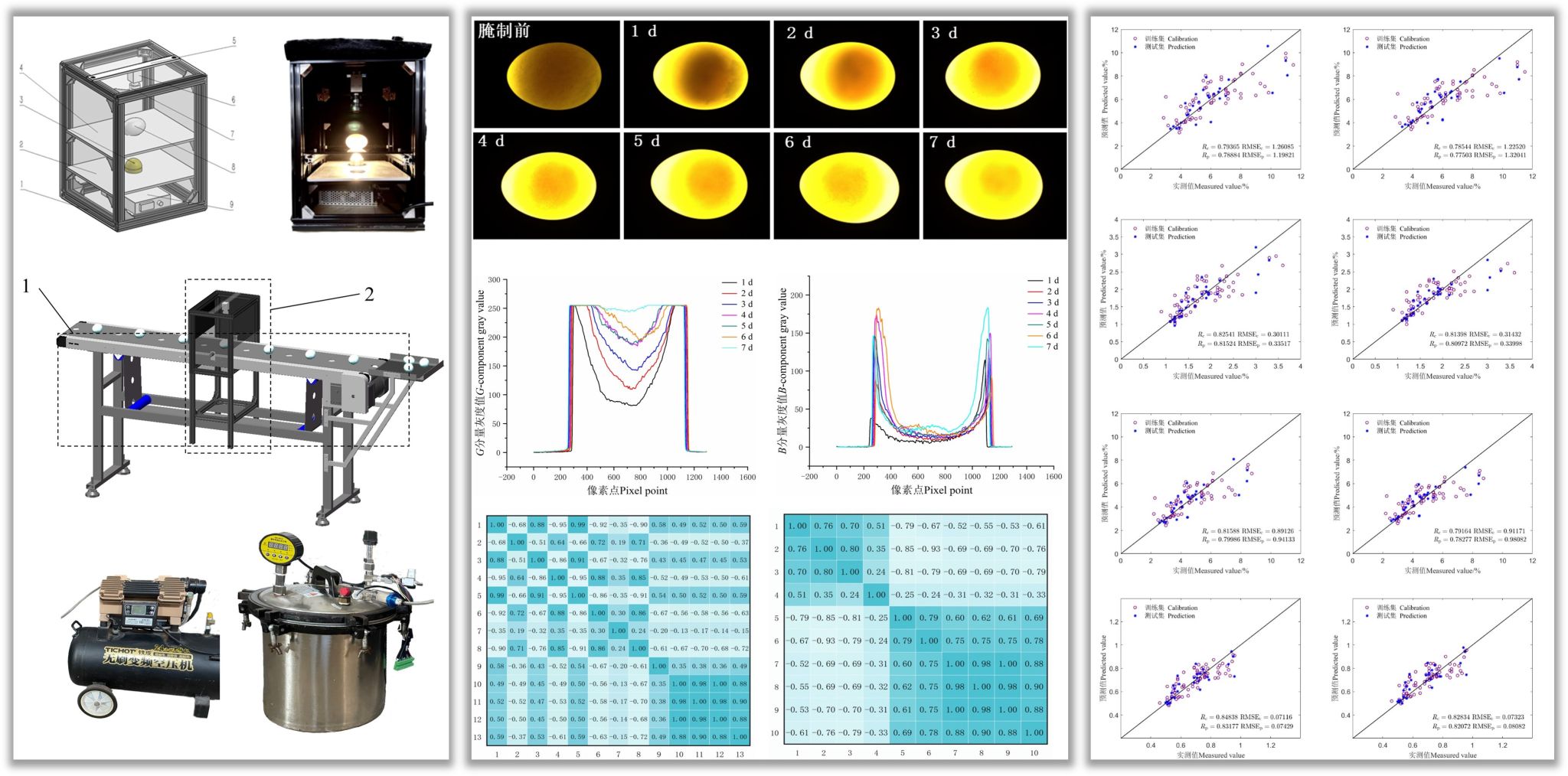 咸蛋是一种深受喜爱的传统蛋制品,含盐量是品质评价关键指标。快速而准确地检测咸蛋的含盐量,一直是咸蛋加工行业面临的技术难题。该研究从原理和技术上分析机器视觉技术对咸鸭蛋含盐量检测的可行性,研究咸鸭蛋的透射图像特征与含盐量及蛋黄指数之间的相关关系,建立了咸鸭蛋含盐量和蛋黄指数的定量预测模型。研究表明,咸鸭蛋透光性随含盐量的增加而不断提高,蛋黄所在的视野区域逐渐缩小,颜色逐渐变浅,呈现规律性的变化。采用图像整体特征和长轴截面光强度特征两种特征提取方法,利用多元线性回归、支持向量机回归两种算法,建立蛋清、蛋黄及全蛋含盐量以及蛋黄指数的定量预测模型。基于图像整体特征的模型在蛋清、蛋黄、全蛋含盐量预测方面表现优异,基于长轴截面光强度特征的MLR模型在蛋黄指数预测上表现最佳。