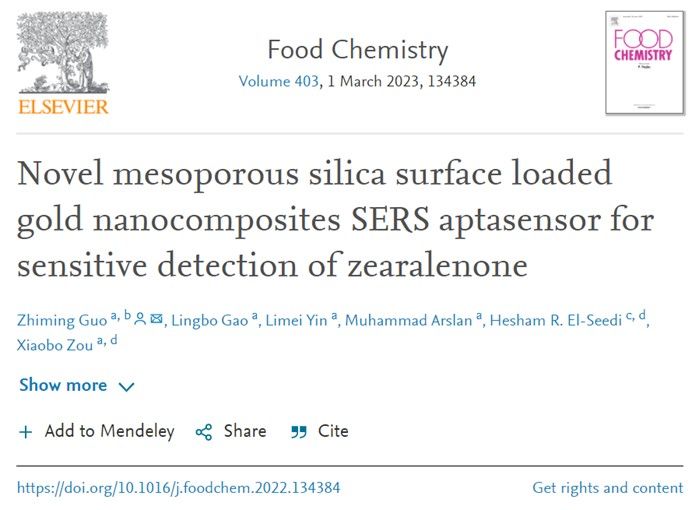 郭志明教授课题组在Food Chemistry (Q1)期刊上发表了题为"Novel mesoporous silica surface loaded gold nanocomposites SERS aptasensor for sensitive detection of Zearalenone"的研究论文。论文第一/通讯作者为郭志明教授,第二作者为硕士研究生高凌波,论文第一单位为新葡京娱乐城app
