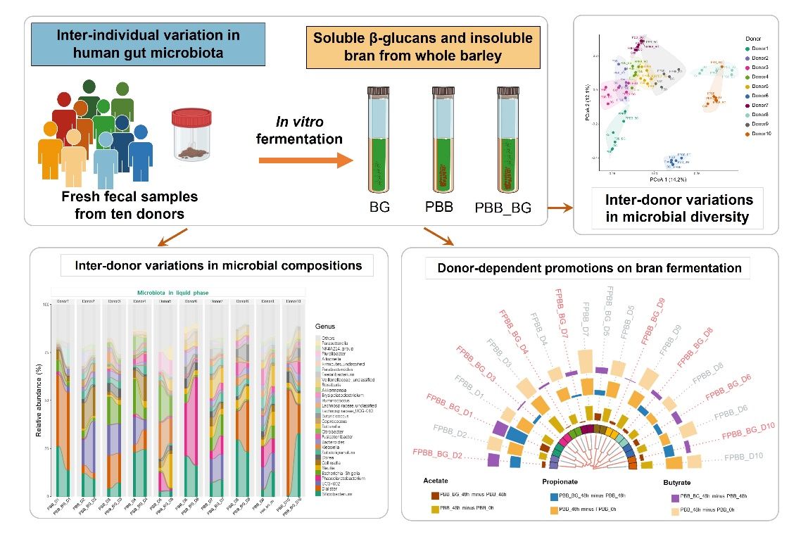 近日,我院肖香教授、范松涛讲师在在国际Top期刊《Food Hydrocolloids》(Q1,IF2023:11.0)上发表论文“Inter-individual variation in human microbiota drives differential impacts on the fermentability of insoluble bran by soluble β-glucans from whole barley”。江苏大学为第一完成单位,食生学院范松涛讲师和22级硕士研究生丁怡炜为该文共同第一作者,肖香教授为该文通讯作者。