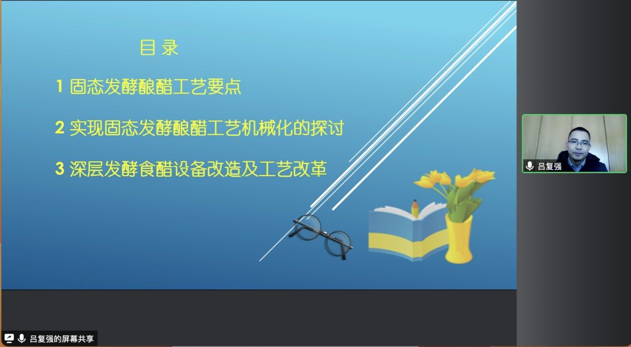 举办的“产业教授进校园活动”顺利举行,本次会议邀请江苏省产业教授、江苏恒顺醋业股份有限公司企业管理部部长吕复强做 “食醋生产工艺及发酵反应器研究进展”的专题报告,报告通过腾讯会议直播。食品物理加工研究院常务副院长何荣海教授主持会议,新葡京娱乐城app