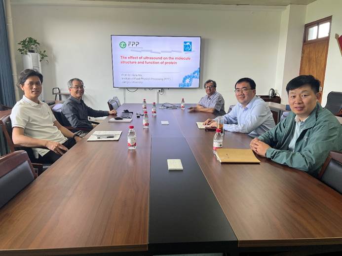 马海乐教授以“The effect of ultrasound on the molecule structure and function of protein”为题,分享了其课题组在超声波作用下蛋白质结构与功能变化方面的研究进展,与Swamy教授展开了深入的学术交流,双方在多个研究方向上达成了初步合作意向。