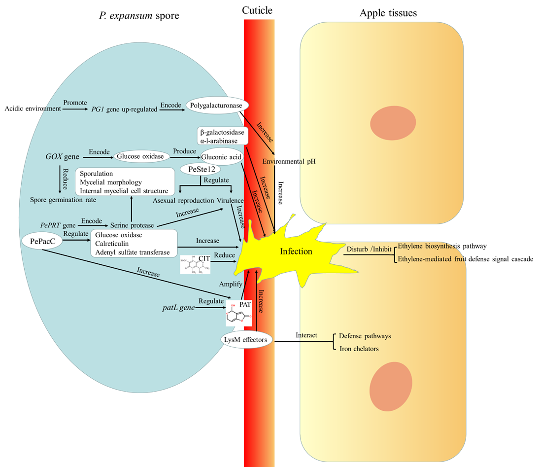 P.expansum侵染采后苹果的分子机制模型图
