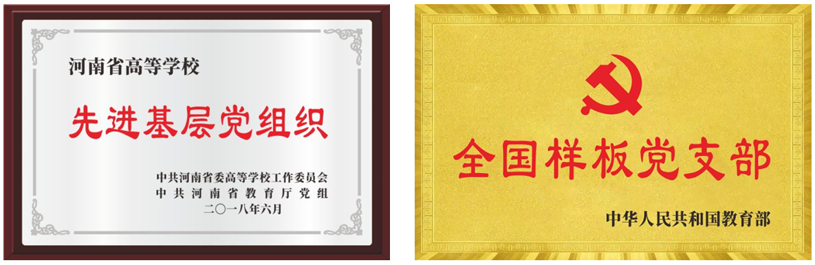 新葡京娱乐城App 党委持续建强“党委—立标杆,支部—树样板,党员—做先锋,事业—促发展”四位一体工作体系。下设6个教工党支部,其中全国党建工作样板党支部1个、全省高校省级样板党支部2个、校级样板党支部3个。先后获评河南省高等新葡京娱乐城App 先进基层党组织、校宣传思想文化工作先进单位、关心下一代工作先进集体等。