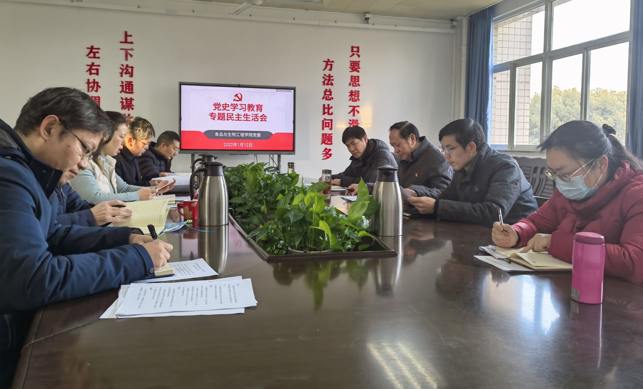 1月12日上午,食品与生物工程学院党委领导班子在食品楼302会议室召开2021年度党史学习教育专题民主生活会,校党委常委、副校长赵玉涛参会指导,党史学习教育校内第八指导组副组长陈权、联络人唐小青列席会议。