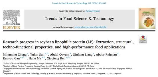 任晓锋教授课题组在国际食品领域顶级期刊《Trends in Food Science & Technology》(Q1,IF=14.9)在线发表了标题为“Research progress in soybean lipophilic protein (LP): Extraction, structural, techno-functional properties, and high-performance food applications”的综述性论文(DOI: 10.1016/j.tifs.2024.104440)。新葡京娱乐城app