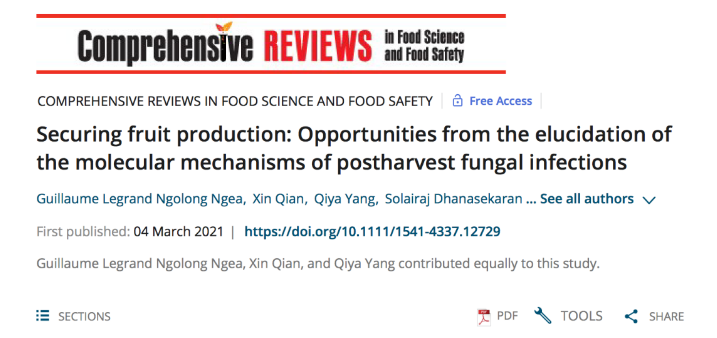 张红印教授在Comprehensive Reviews in Food Science and Food Safety在线发表题为“Securing fruit production: opportunities from the elucidation of the molecular mechanisms of postharvest fungal infections”的综述(//doi.org/10.1111/1541-4337.12729),系统阐述了病原菌侵染水果的分子机制及其防治策略方面的最新研究进展,该成果已被《食品科学》公众号(//mp.weixin.qq.com/s/ze9IG8Q8TrRYFBGmcmu84w)推送,并被网易(//www.163.com/dy/article/G4IUIETB0530N4P3.html)、今日头条(//www.toutiao.com/i6937171261021831688/)、新浪微博等媒体广泛报道,产生了较大的学术影响。新葡京娱乐城app