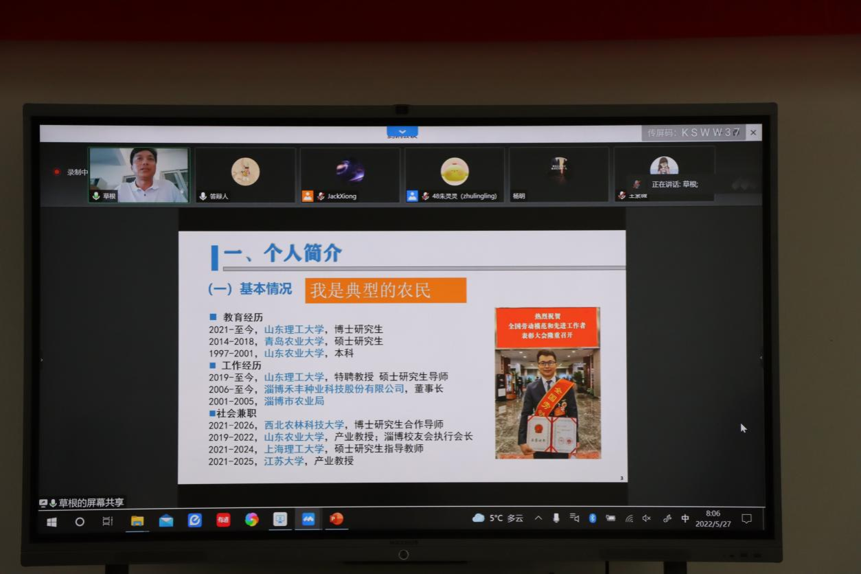 302会议室顺利召开,邀请正高级农艺师、淄博禾丰种业科技股份有限公司董事长朱俊科在线上为同学们做了“小麦育种与品质研究前沿”的专题报告。副院长张红印教授主持会议,三十余名师生到场参加本次活动,另有四十余名师生线上参与学习。