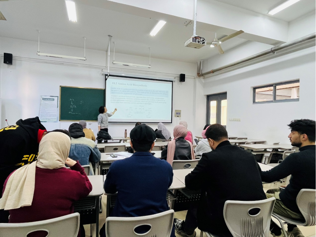 在课堂上,胡新娟副教授以生动的讲解和丰富的实例,系统阐述了生物固氮、必需氨基酸与非必需氨基酸的区别及功能、尿素循环的代谢过程等重点内容。她结合图示与案例分析,深入浅出地讲解了相关生化反应的原理与生理意义,帮助学生更好地理解生命物质代谢的基本机制。课堂气氛活跃,留学生们积极提问并参与讨论,展示了浓厚的学习兴趣。此次公开课不仅提升了留学生对生物化学与分子生物学知识的理解,也促进了中外学生之间的学术交流与互动。
