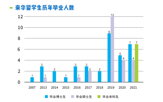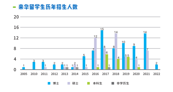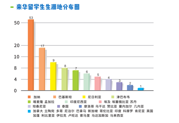 来华留学教育初具规模,培养了来自35个国家和地区的157名留学生,98%以上是学历生。从学历生层次来看,以研究生为主:博士生82人,硕士生55人,本科生17人;从生源国来看,主要来源于加纳、巴基斯坦、尼日利亚、孟加拉等亚非国家。研究生培养方向遍布新葡京娱乐城app