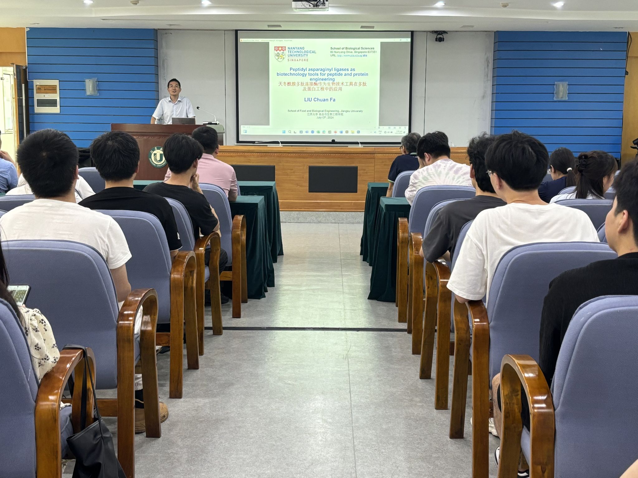 2024年7月13日下午,应江苏大学食品与生物工程学院的邀请,新加坡南洋理工大学Liu ChuanFa教授在会议中心第三报告厅进行了关于“多肽与蛋白质的合成、修饰”的学术报告。报告由食品与生物工程学院副院长周存山主持,吸引了众多教师、研究生和留学生参加。